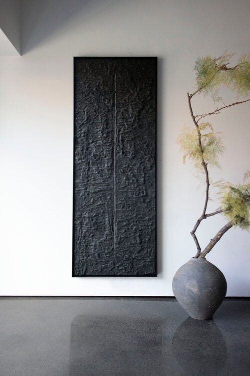 I set my mind on a large canvas. The plan was to paint it all black with something in the center and then embroider moss onto it for the biophilic look. That seemed cool, but time consuming. So i drifted off to Pinterest.